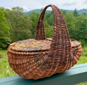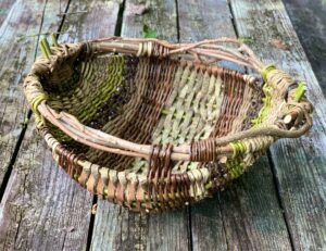 I have always found something compelling and almost spellbinding about the weaving together of natural materials & vines. I’m also very passionate about using materials I can grow and/or harvest myself when basket weaving as Nature provides not only the materials, but also the inspiration and sense of well-being, all of which coalesce into the creation of my woven pieces. I love to explore forms and push the boundaries of traditional functional forms into more imaginative objects of art. I believe a basket can hold more than just items, it can hold your attention and capture your imagination.